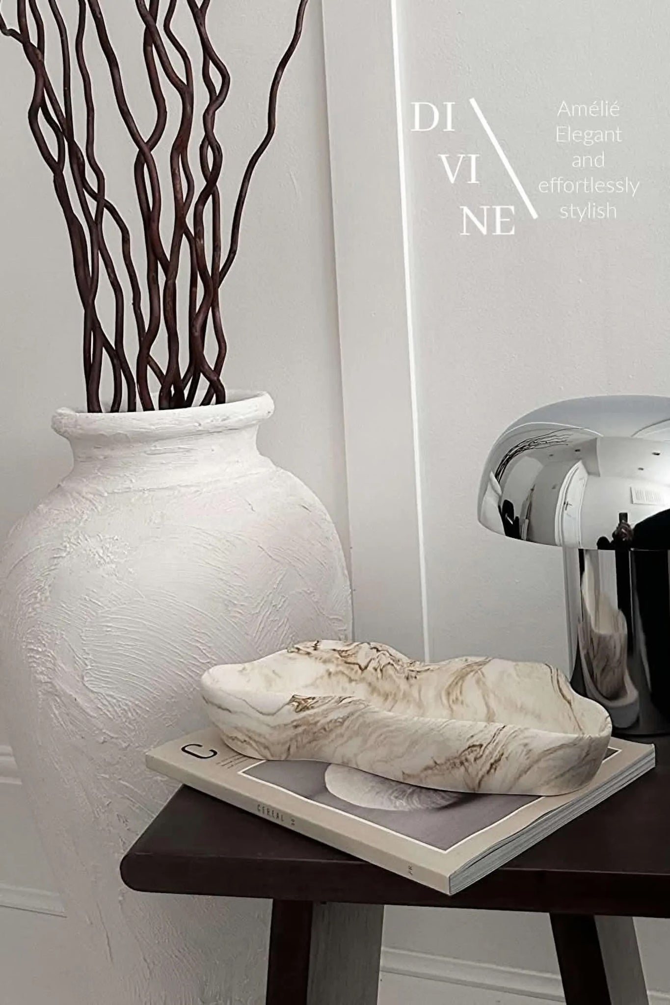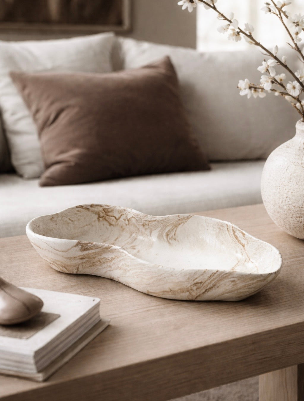 Elegant and effortlessly stylish, the Amélié dish brings a touch of artistry to any space. Crafted from smooth ceramic with a graceful wavy silhouette and finished in a soft marbled effect, it makes a beautiful statement piece on its own or the perfect spot for holding jewellery, keys, or other treasured trinkets.