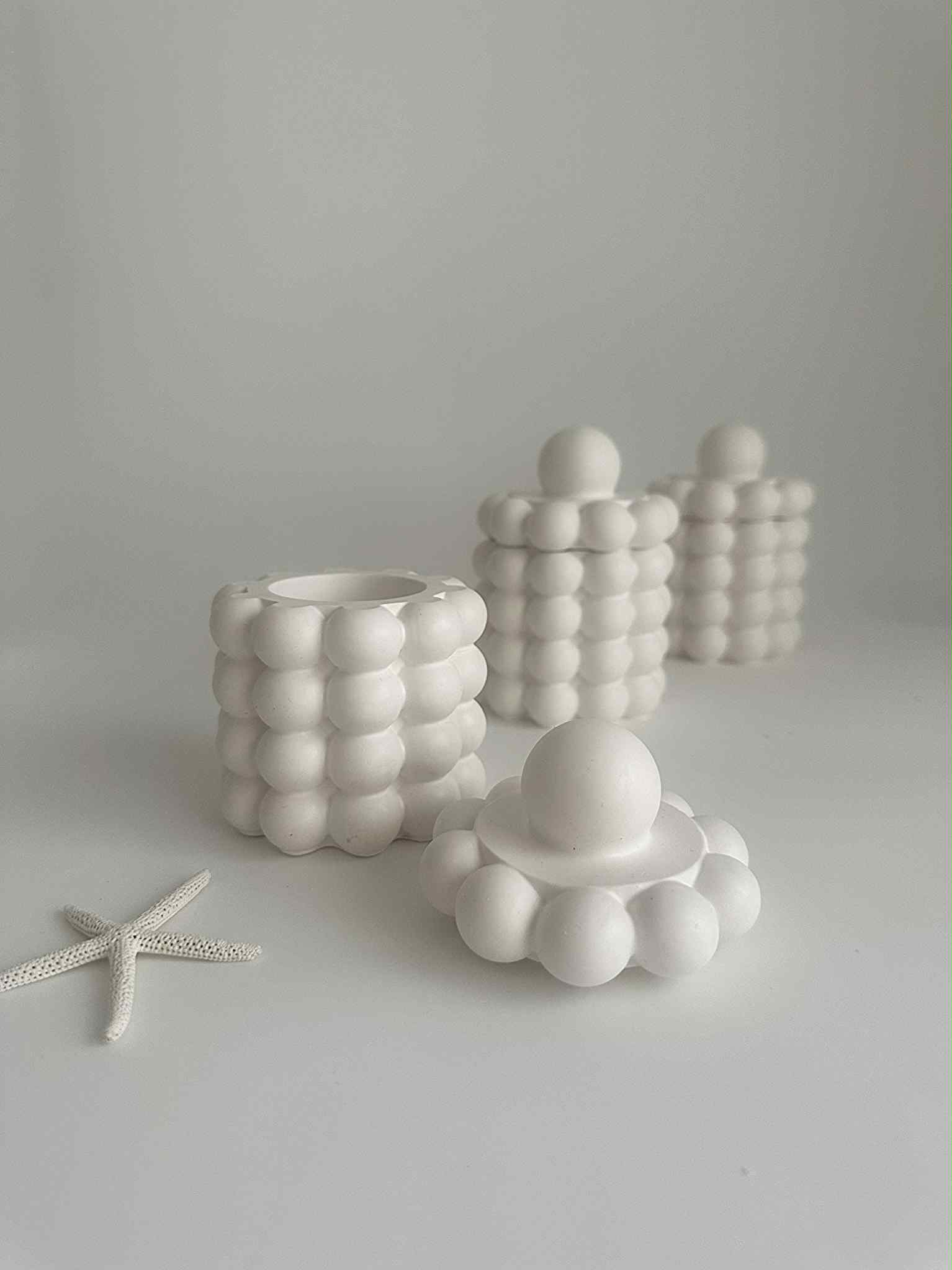 The name Bolla Marina means sea bubble, and these charming ceramic jars are finished with a playful bobble texture that makes them as decorative as they are practical. Perfect for keeping cotton pads, bath salts, or small essentials neatly stored in the bathroom, they also double beautifully as stylish accents in the living room or on open shelving. Each jar is handcrafted, giving it a unique character and a timeless, tactile appeal. Functional storage with a touch of personality.