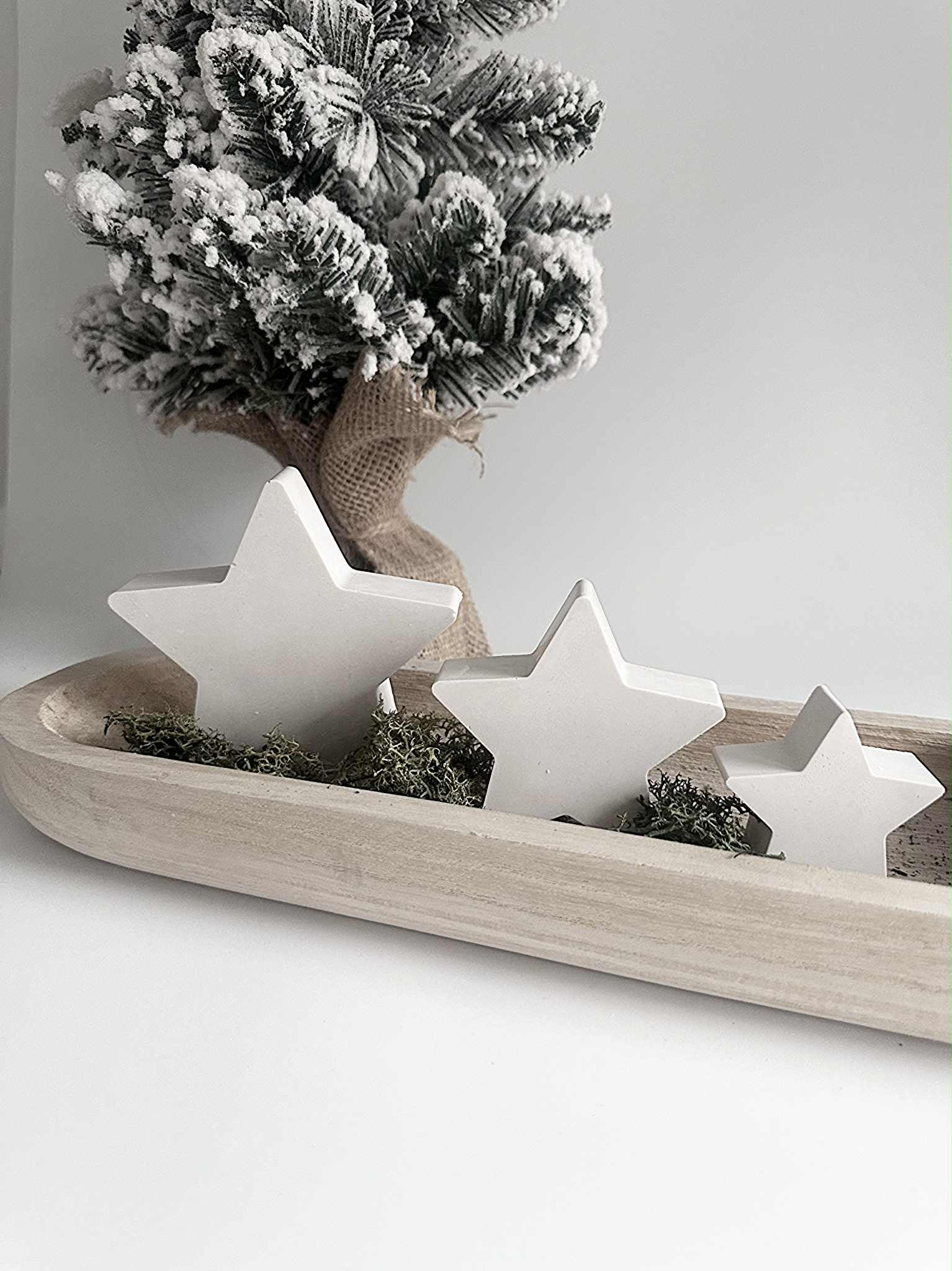 These elegant stars look lovely, placed on a shelf, or displayed as part of your holiday table setting. Their minimalist design complements any style — from rustic farmhouse to modern boho.